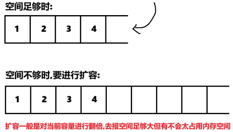 }我们在插入之前,先给栈分配4个单位大小的空间,如果超出了,那就再继续扩容