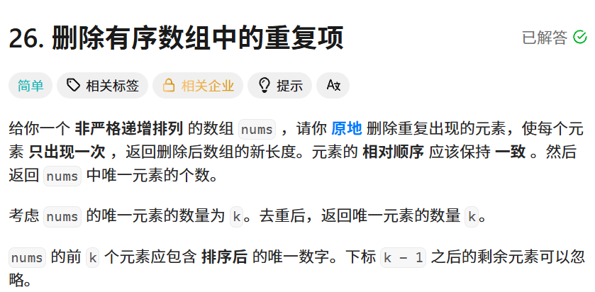 这是题目链接:26. 删除有序数组中的重复项,下面是具体的题目: