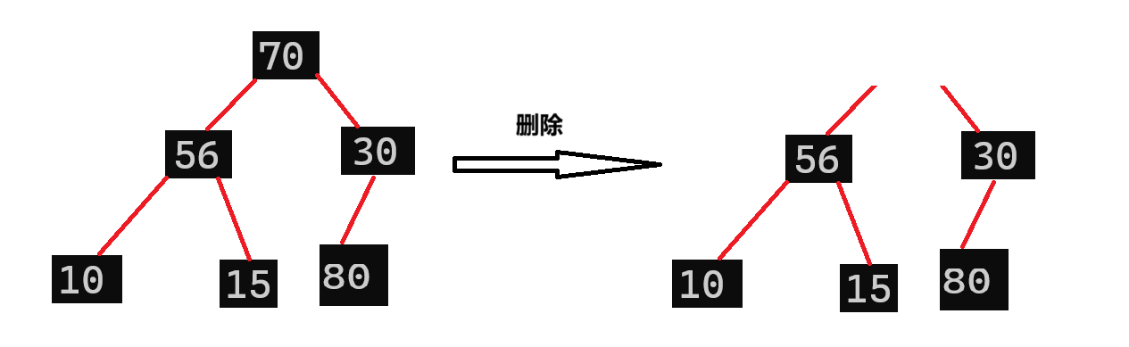 现在要考虑第二个问题:删除堆顶元素,是直接删除吗?像下面这样?