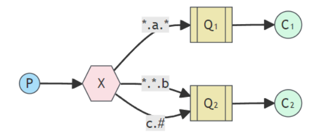 路由模式的升级版,在 Routing Key 的基础上,增加了通配符的功能,使之更加灵活。