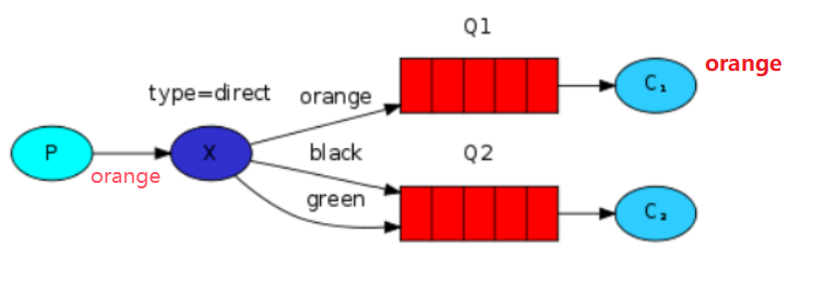 Routing Key为 orange,那么消息就会路由到 Q1。