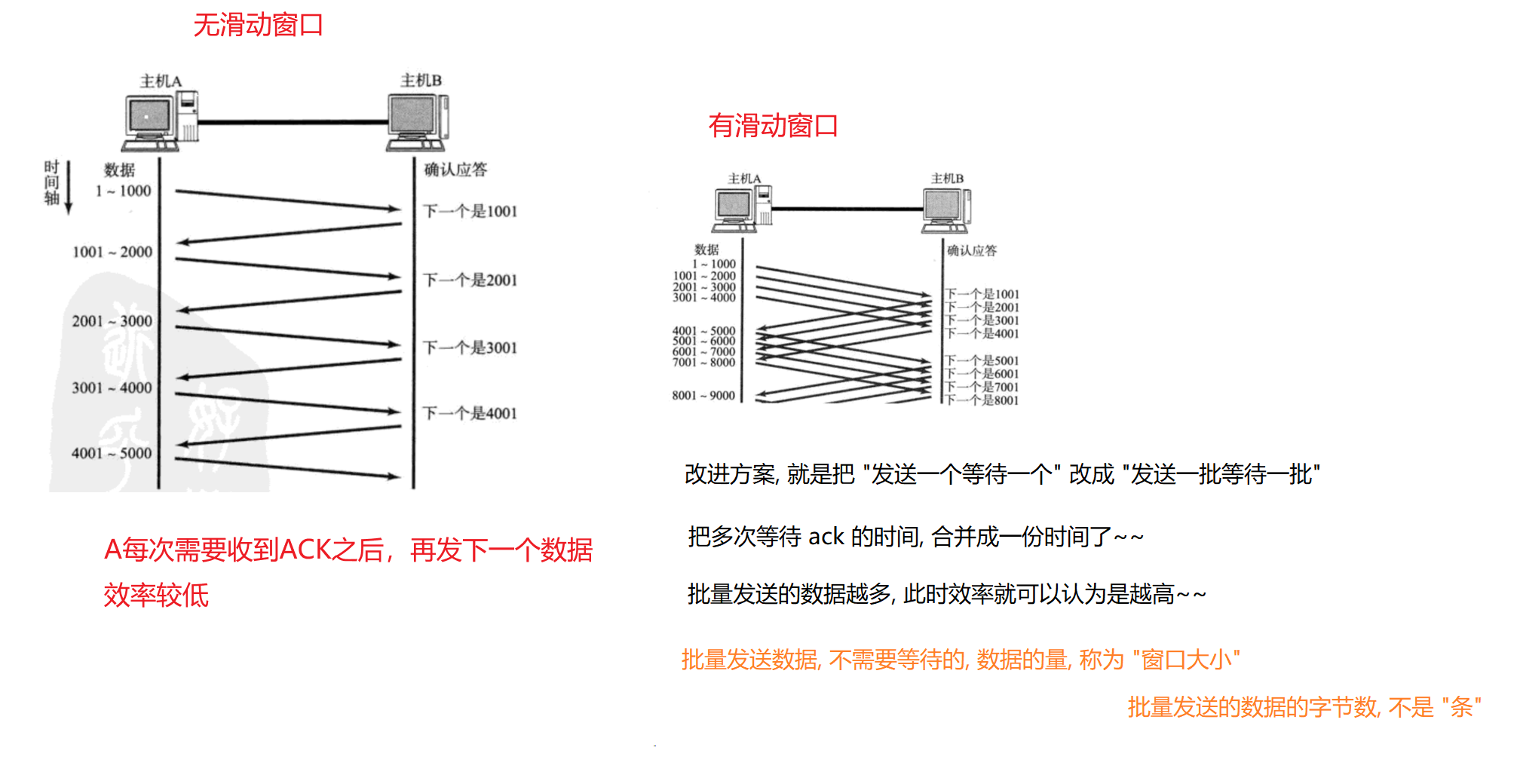 TCP引入了滑动窗口是希望能在可靠传输的基础上也有一个不错的效率,这里的提高效率,只是“亡羊补牢”,使传输效率的损失,尽可能降低,引入滑动窗口,不能使传输效率比UDP还高的
