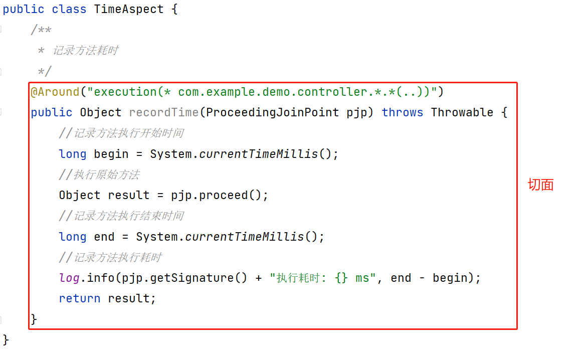 log.info(pjp.getSignature() + "执行耗时:{}ms", end - start);