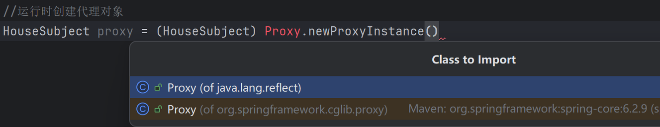 /*HouseSubject proxy = (HouseSubject) Proxy.newProxyInstance(target.getClass().getClassLoader(),