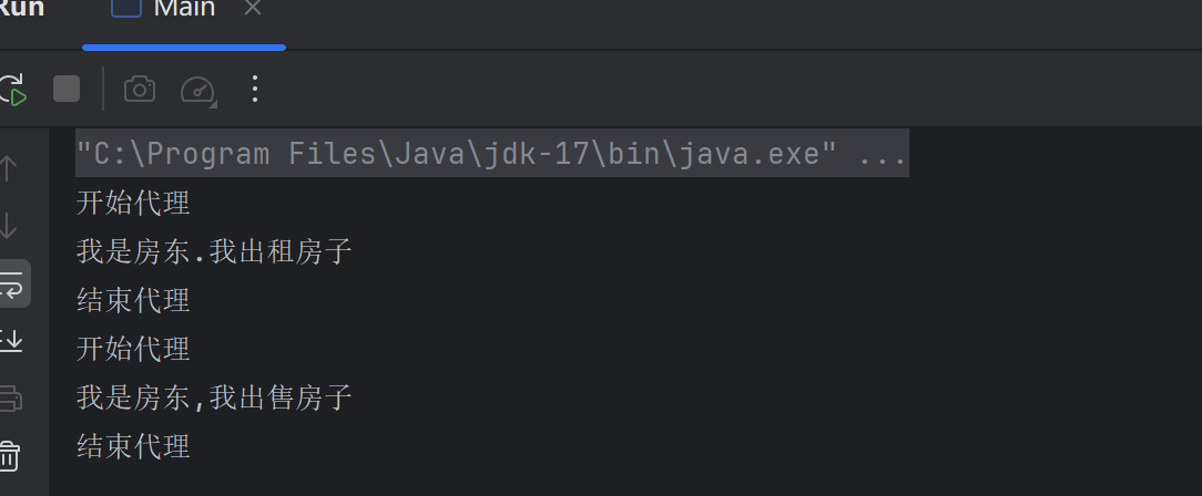 System.out.println("我是中介, 我帮房东开始代理");