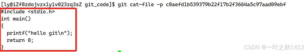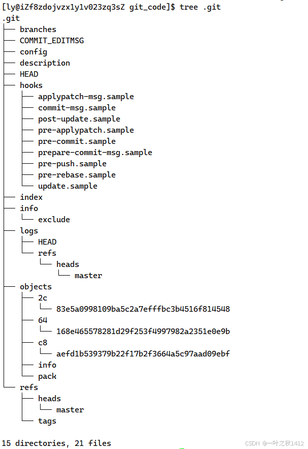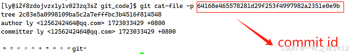 查找object时要将 commit id分成两部分,前两位是文件夹名称,后38位是文件名称. 找到这个文件后,一般不能直接看到里面是什么,该类文件是经过sha(安全哈希算法)加密过的文件,不过我们可以使用git cat-file 命令来查看版本库对象的内容.