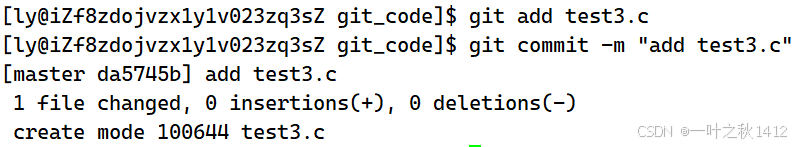 当我们提交后发现打印了"1 file changed, 0 insertions(+), 0 deletions(-)",这句话的意思是只有一个文件被修改了,那么有的uu就会有疑问,不是新增了两个文件吗? 我们来简单回亿一下,git add是将文件添加到暂存区,git commit是将暂存区的内容添加到本地仓库中.由于我们并没有使用git add test3.c,那么因此test3.c就不在暂存区中维护,所以我们在commit的时候,其实只是把已经在暂存区中的test2.c提交了,而遗漏了工作区中的test3.c.那么该如何提交test3.c呢,其实很简单滴,只要再次add然后commit即可~