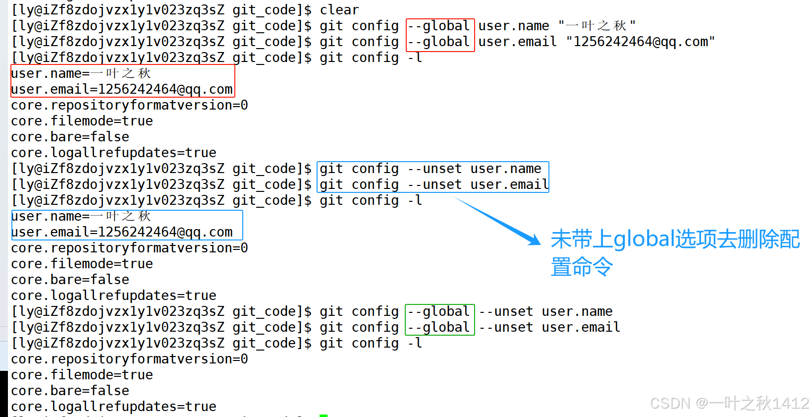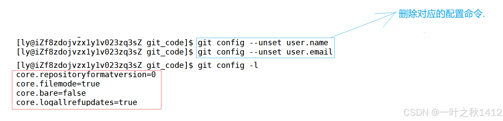 有的uu可能在配置用户名或者邮箱的时候,不小心配置错误了,那么这时候我就可以通过git config --unset 命令来删除对应的配置命令.