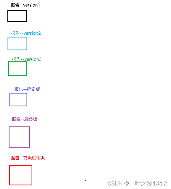 从上面的故事回归到我们生活中,在我们学习时,是不是经常会遇到这样子的情况:我们在编写各种文档,为了防止文档丢失,更改出现差错,为了防止出现差错后不能够恢复到原来的版本,这个时候就不得不复制出一个副本,就会出现如下情况