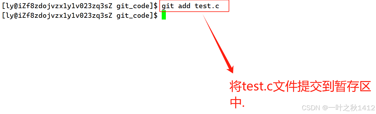 我们在包含.git的目录下新建了一个test.c的文件,那么我们可以使用git add命令将文件添加到暂存区里面.
