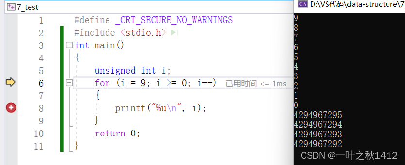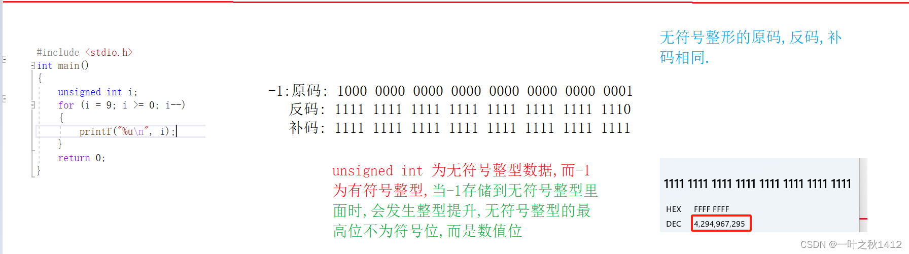 通过观察上面的结果,我们可以看到,此代码也会发生死循环,那么是为什么呢,有的uu会很奇怪,当i ==0时,此时再对其进行--,不应该是到 -1了吗,那么这是为啥呢?