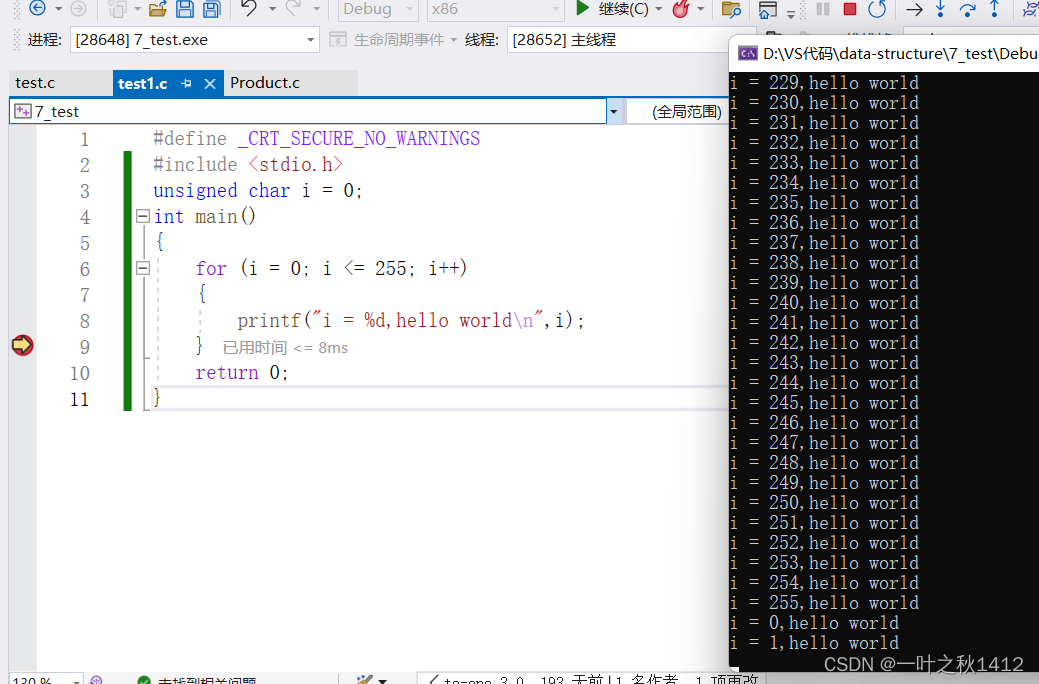 当我们了解了整数在内存中的存储方式后,接下来我们来通过调试看一个小细节.