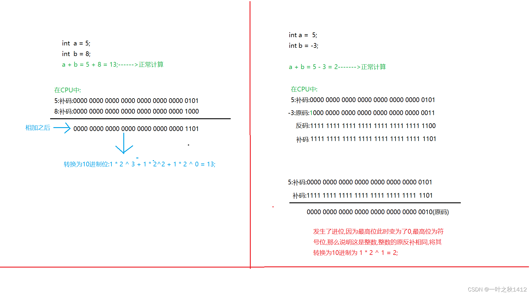 对于整形来说: 数据存放在内存中其实存放的是补码.这是为什么呢