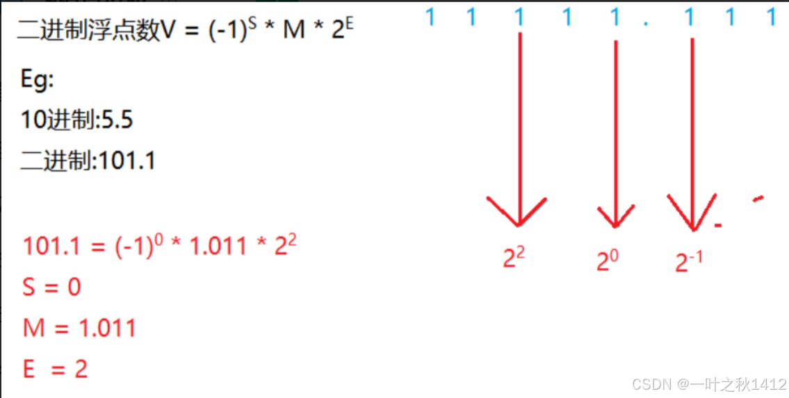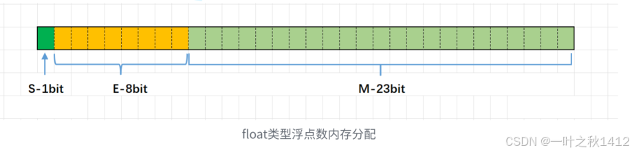 对于32位的浮点数,最高的1位存储符号位S,接着的8位存储指数E,剩下的23位存储有效数字M.