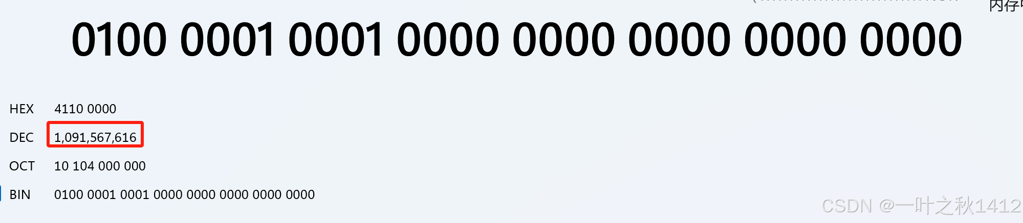 因此二进制序列是 0(S) 10000010 (3 + 127---->E)001 0000 0000 0000 0000 0000