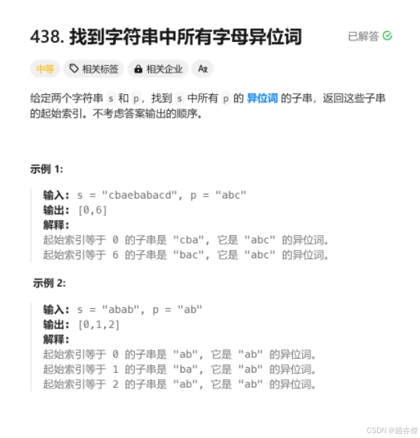 该题目与上题找到字符串中所有字母异位词有异曲同工之妙,上题是判断字符而本题是用来判断字符串,与上题的不同点: