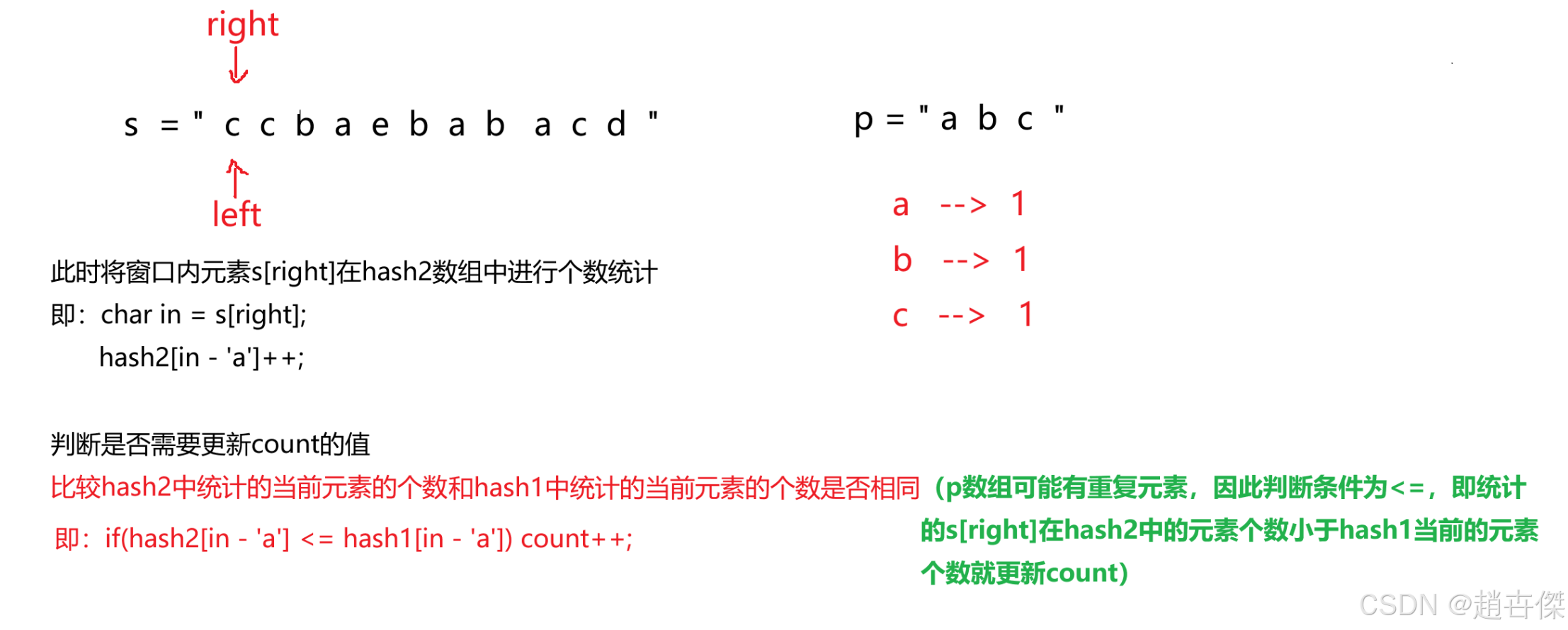 if(hash2[out - 'a'] <= hash1[out - 'a']) count--; //先判断是否为有效字符 c c 此时count不变