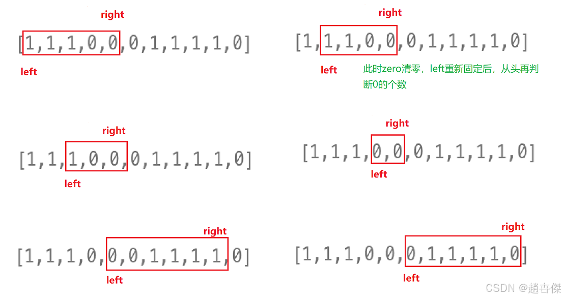 for(int left = 0,right = 0,zero = 0;right < n;right++) {