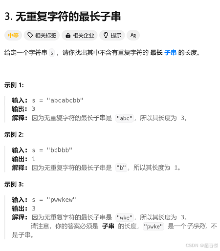 https://leetcode.cn/problems/longest-substring-without-repeating-characters/description/