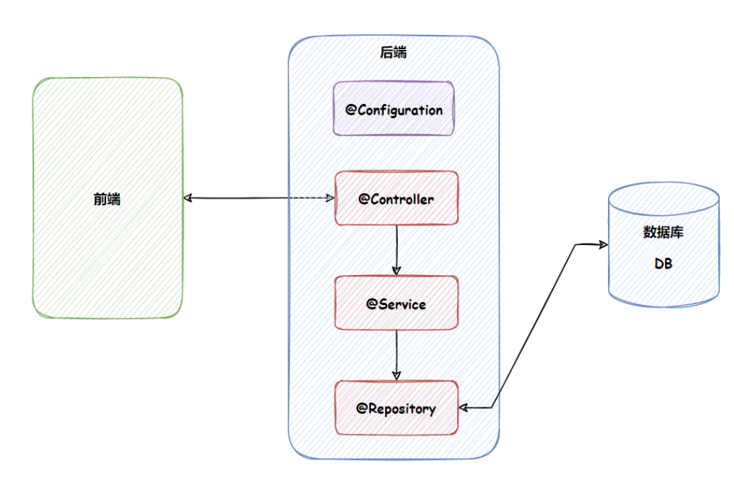 例子: 餐厅老板(@Configuration)组装好咖啡机(@Bean),服务员(@Controller)直接用咖啡机给顾客做咖啡,不用操心咖啡机怎么来的。