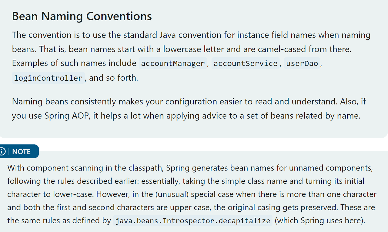 ①前两位字母均为大写,bean名称为类名