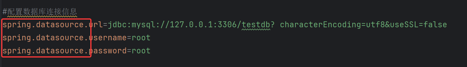 spring.datasource.url=jdbc:mysql://127.0.0.1:3306/testdb?characterEncoding=utf8&useSSL=false