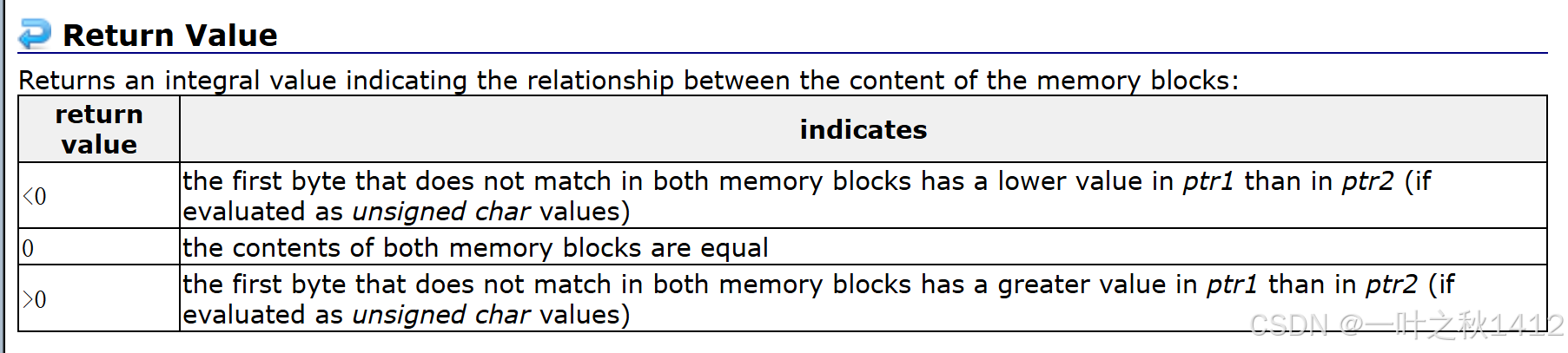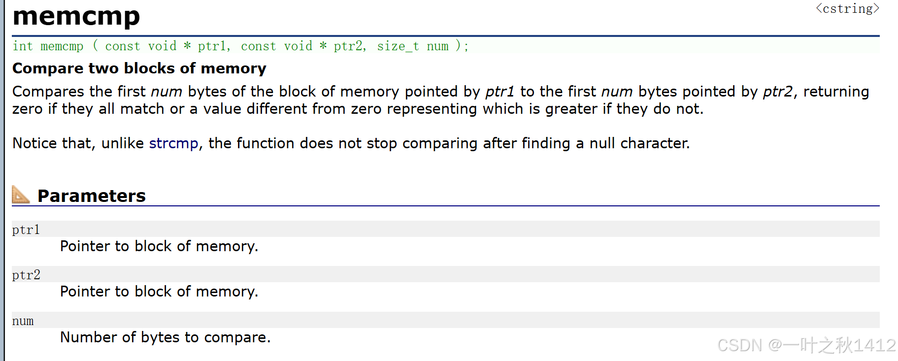 int memcmp(const void * ptr1, const void * ptr2,size_t num);该函数的功能是:从ptr1和ptr2指针的位置开始进行比较,比较的字节个数为num个.