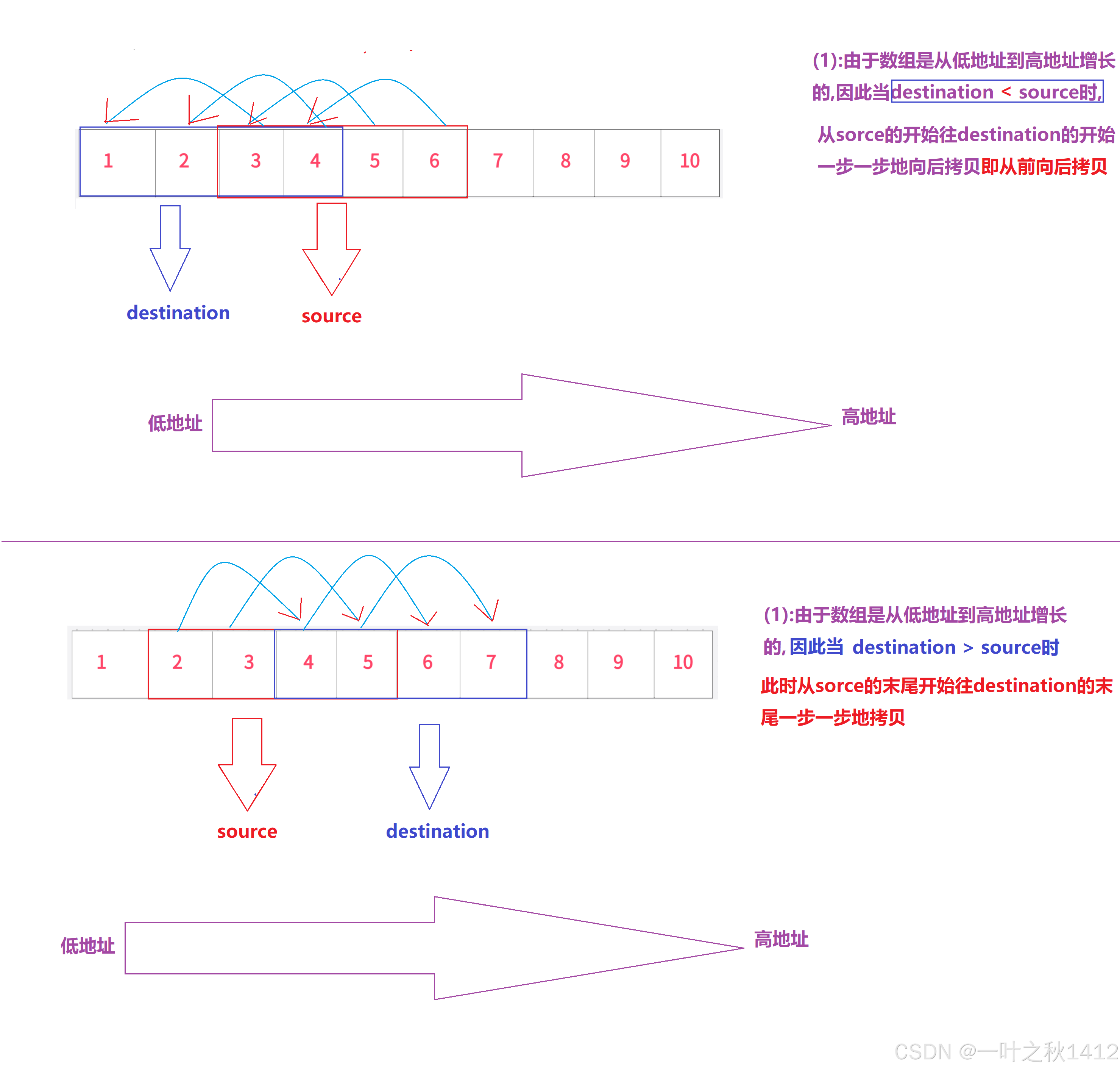//则从source的开始往detination的开始一步一步地向后拷贝