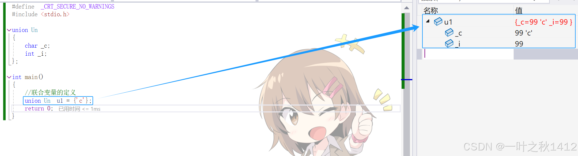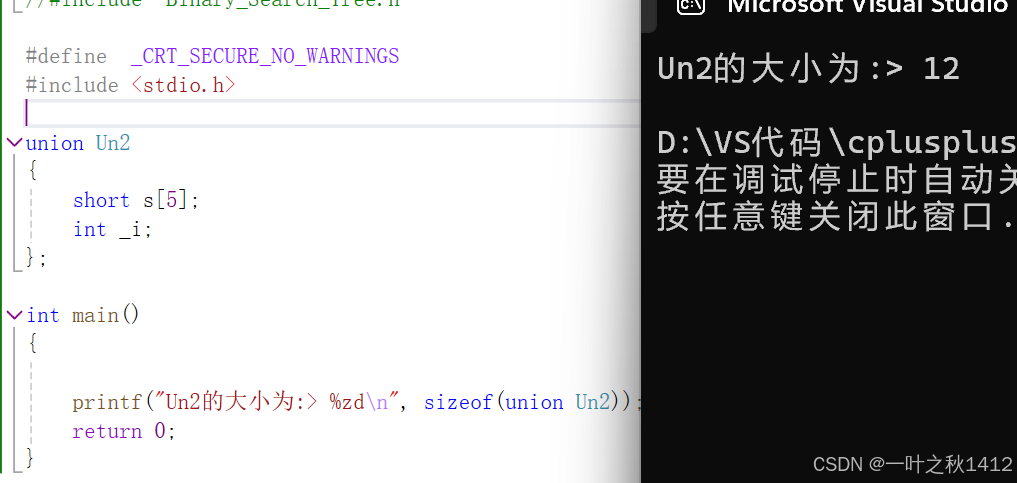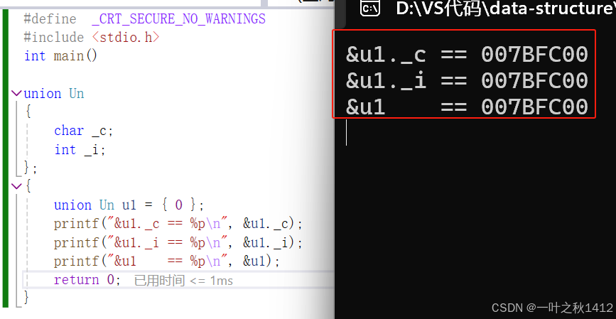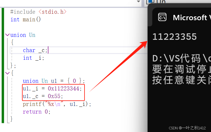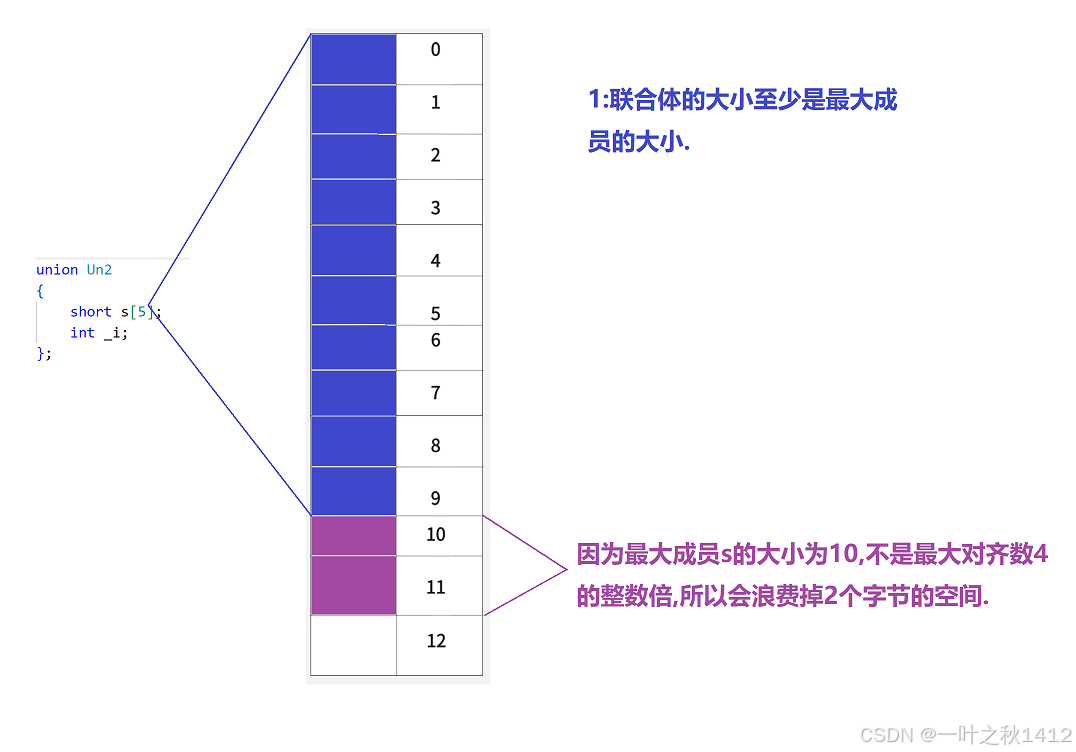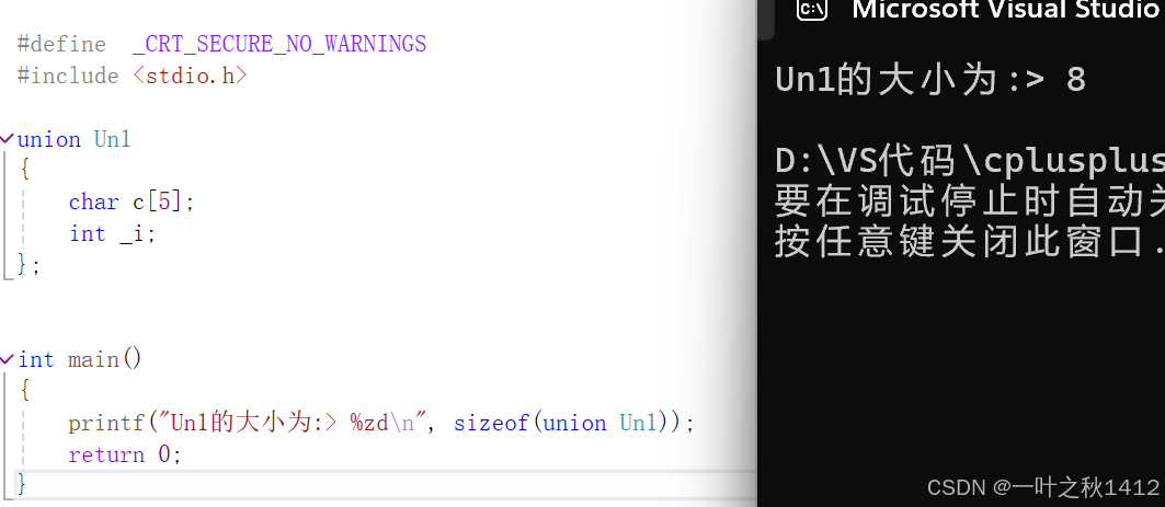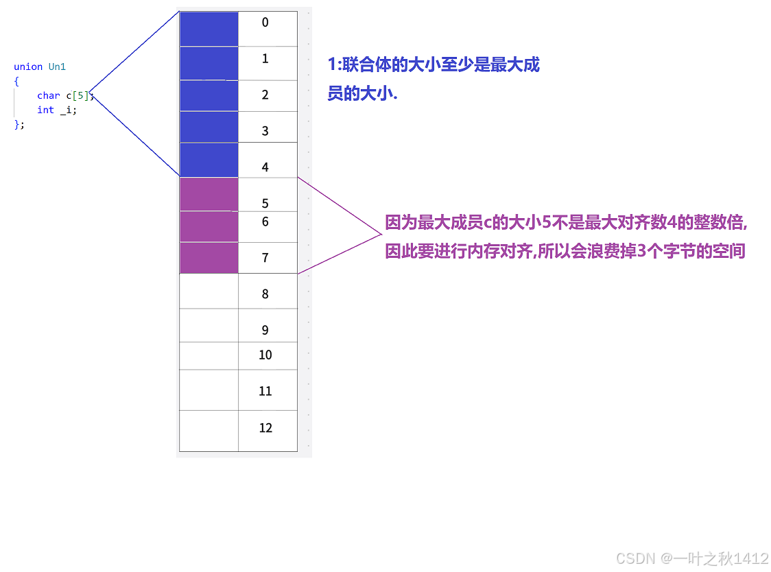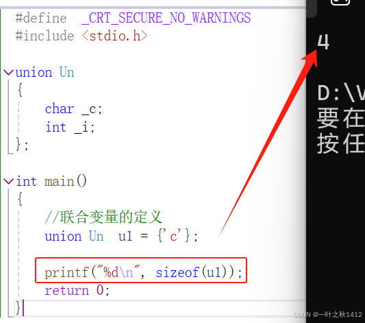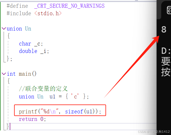 }在结构体那一章节,博主讲到了,结构体的大小要遵循内存对齐的规则,那么联合体要不要遵从内存对齐的规则,如果遵从的话,上面的代码计算出来的结果是8(原因博主不过多解释哈,忘了滴uu可以去去博主那篇结构体的博客).