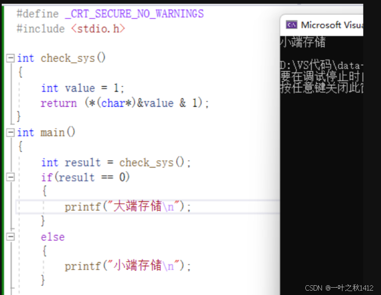 printf("小端存储\n");
