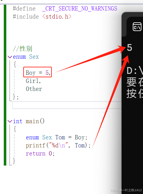 那是否可以拿整数给枚举变量赋值呢?在C语言中是可以的,但是在C++是不行的,C++的类型检查比较较严格。