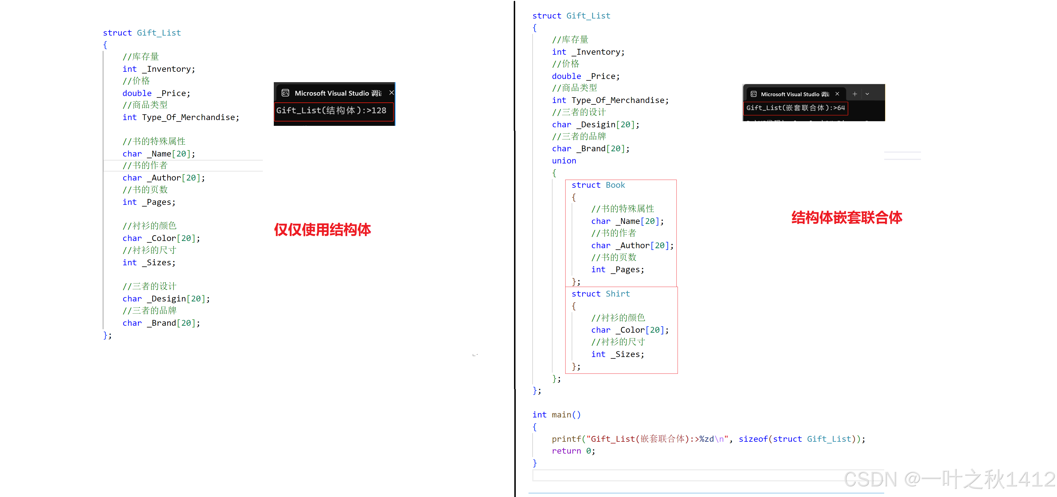 通过对比二者,我们可以清晰地发现,使用联合体可以大大地减少内存空间的占用.
