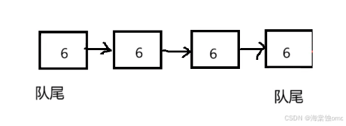 跟栈的问题一样,用数组和链表实现都可以。但是介于队列的特殊结构,我们找到了一个新的方法,因为队列我们只需要看队头和队尾,故可以对链表作出一定的修改,比如: