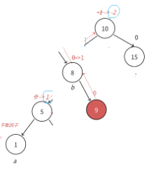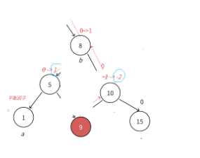 再对以10为根结点的树进行右单旋,此时经过两次旋转过后,整棵树就再次变得平衡,下面就是更新平衡因子。