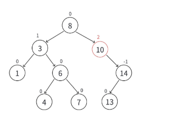 就如这张图所示,在插入13后,10的平衡因子就变为2,此时我们观察到以10为根结点的这颗子树就不是AVL树,左子树的高度为0,右子树的高度为2,此时就要旋转。