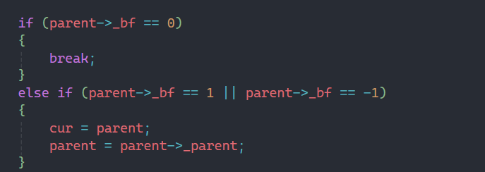 第一种呢很好理解,当更新之后如果parent的平衡因子为0,就说明此时这棵树左右已经平衡了,就没必要再继续向上更新了,所以就可以break停止循环。这里可以看上面插入9那种情况,插入9之后10的左右两边就平衡了,10的平衡因子就变为0.