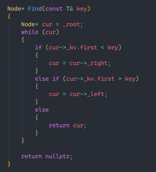 查找和上节课讲的的一样,和insert的前半段差不多,找到了就返回响应的位置即可,未找到返回nullptr。