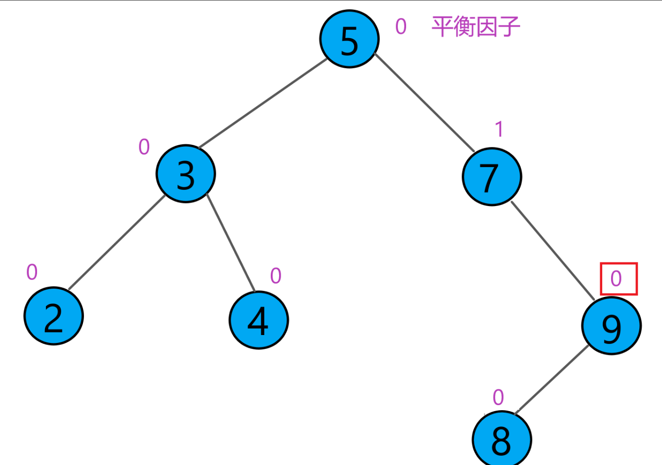 这就是一个简单的AVL树。 在AVL树这里我们引入一个平衡因子(balance factor)的概念,每个结点都有一个平衡因子,任何结点的平衡因子等于右子树的高度减去左子树的高度,也就是说任何结点的平衡因子等于0/1/-1, AVL树并不是必须要平衡因子,但是有了平衡因子可以更方便我们去进行观察和控制树是否平衡,就像一个风向标一样。