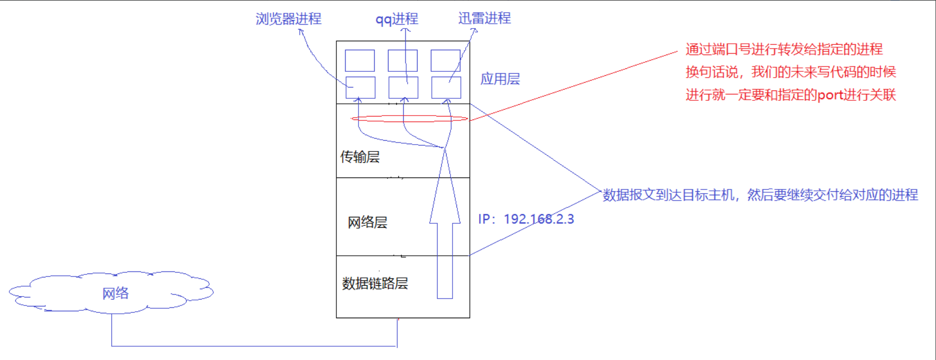 所以:数据传输到主机并不是目的,而是手段,到达主机内部,再交给主机内的进程,才是目的。