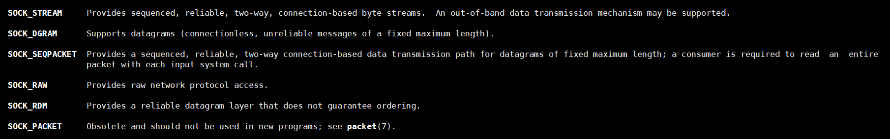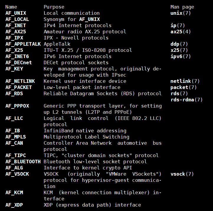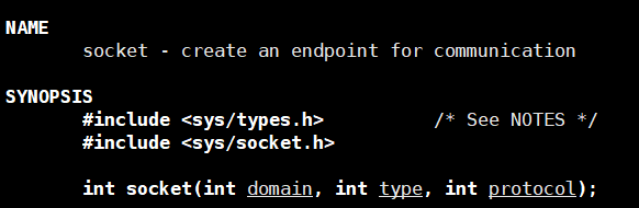 int socket(int domain, int type, int protocol);