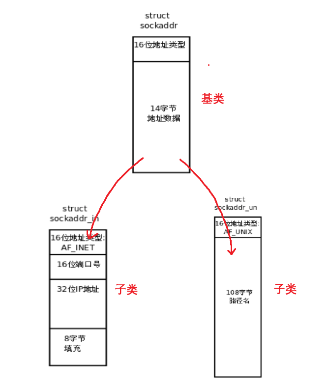 这个struct sockaddr只是一个通用的API模板,我们实际在使用时要传的是后面的两个结构体,分别是:struct sockaddr_in和struct sockaddr_un,并且要进行强转。