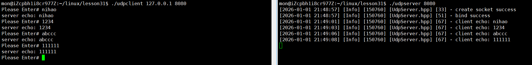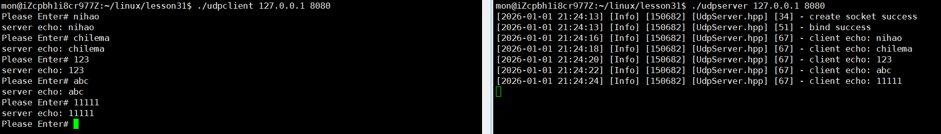 只有上面的理论知识不足以让我们有更深的理解,下面我们实现一个简单的基于UDP协议的回显服务器和客户端代码来帮助大家熟练使用Socket编程的各种接口。