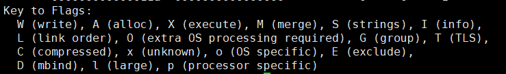 A是alloc,就是需要开辟空间的意思,而X是execute,表示可执行的意思,W是Write,就是可写的意思,这些Flags准确描述了这些section的状态。