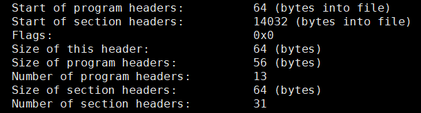 Size of program headers和Number of program headers:这两个就表示Program Header Table这块部分单个程序头的大小和程序头的个数,这个下面将到这部分时我们再细讲。