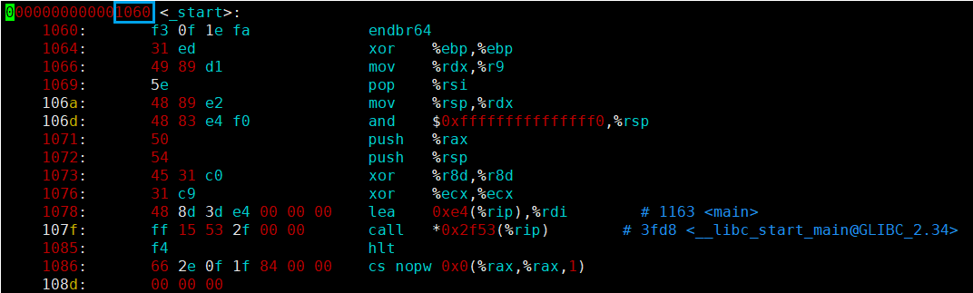 正是 通过ELF Header中的Entry point address这个属性,也就是可执行程序的入口地址得知的。我们再次查看myexe的反汇编,可以看到这个地址对应的是_start,这个_start才是用户态程序的真正入口,并不是我们以为的main函数。