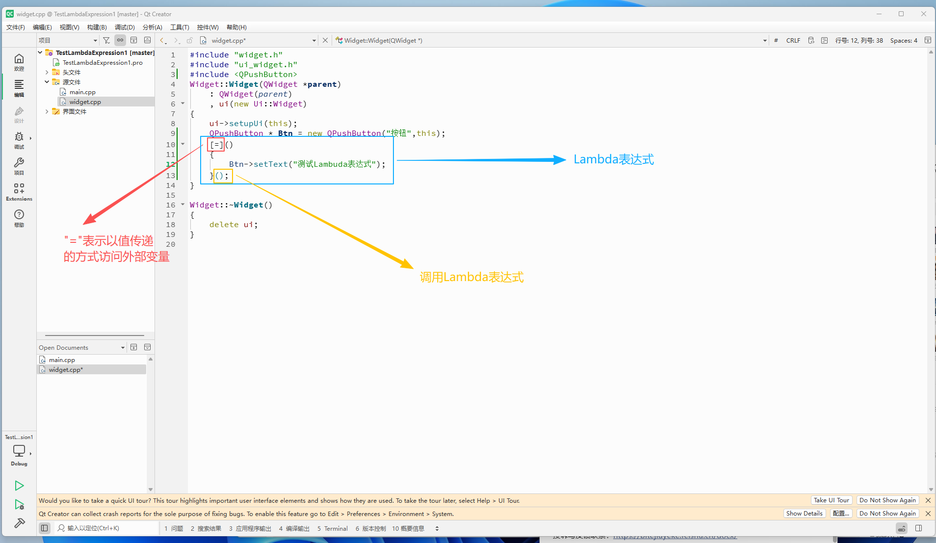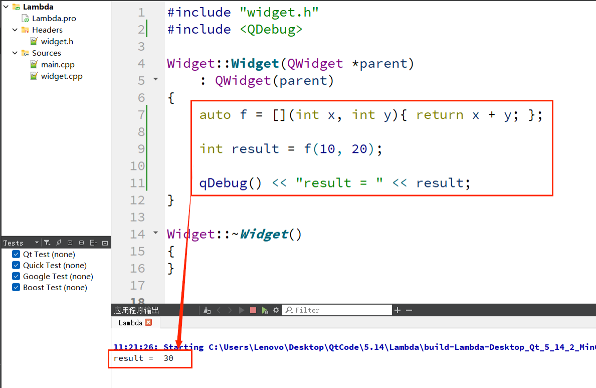 如果我们想方便地编写槽函数,比如在编写函数时连函数名都不想定义,则可以通过Lambda表达式来达到这个目的. Lambda表达式的本质是一个"匿名函数",主要应用在"回调函数"的场景中.