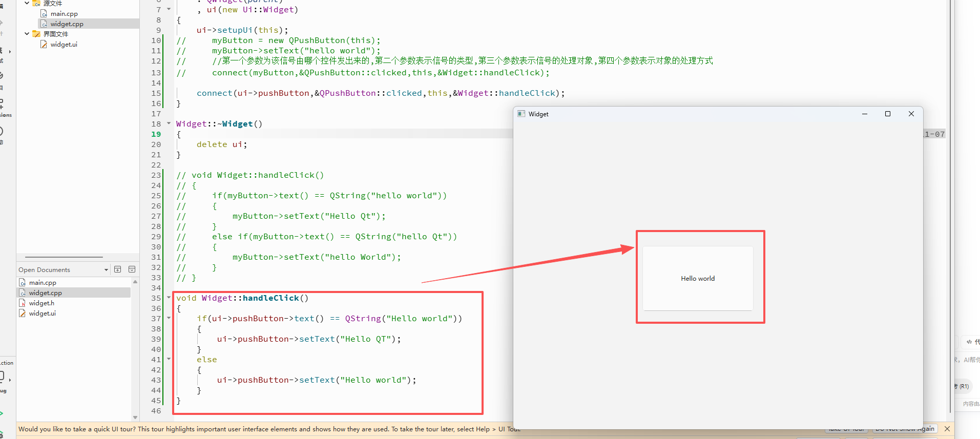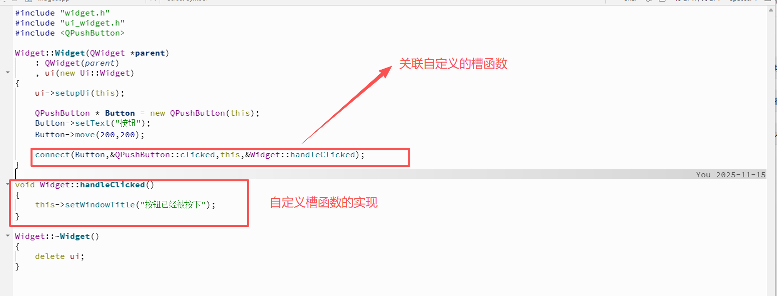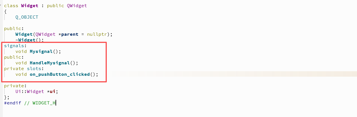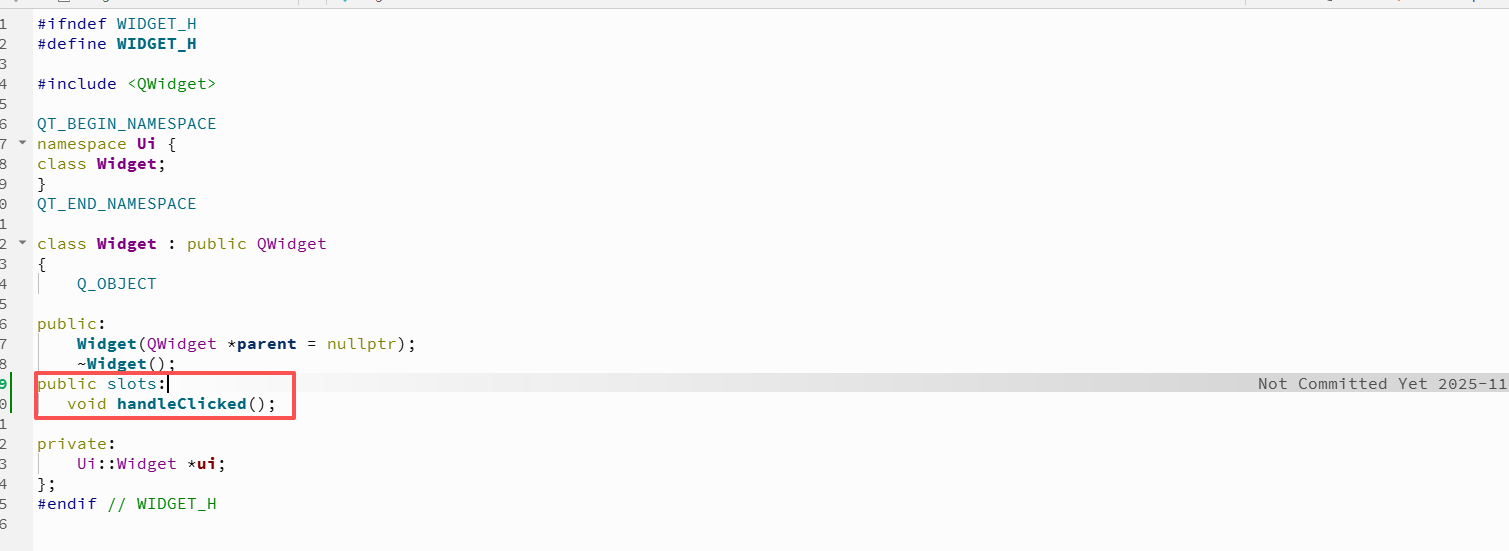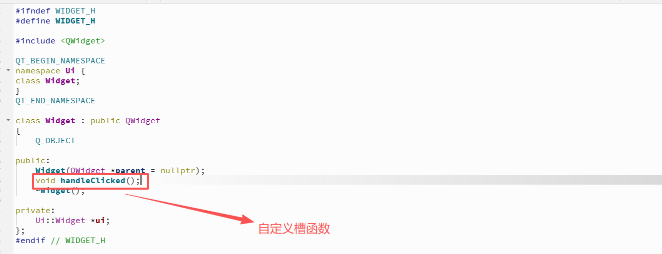 connect(ui->pushButton,&QPushButton::clicked,this,&Widget::handleClick);