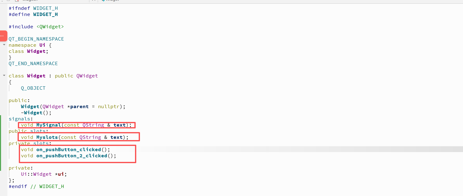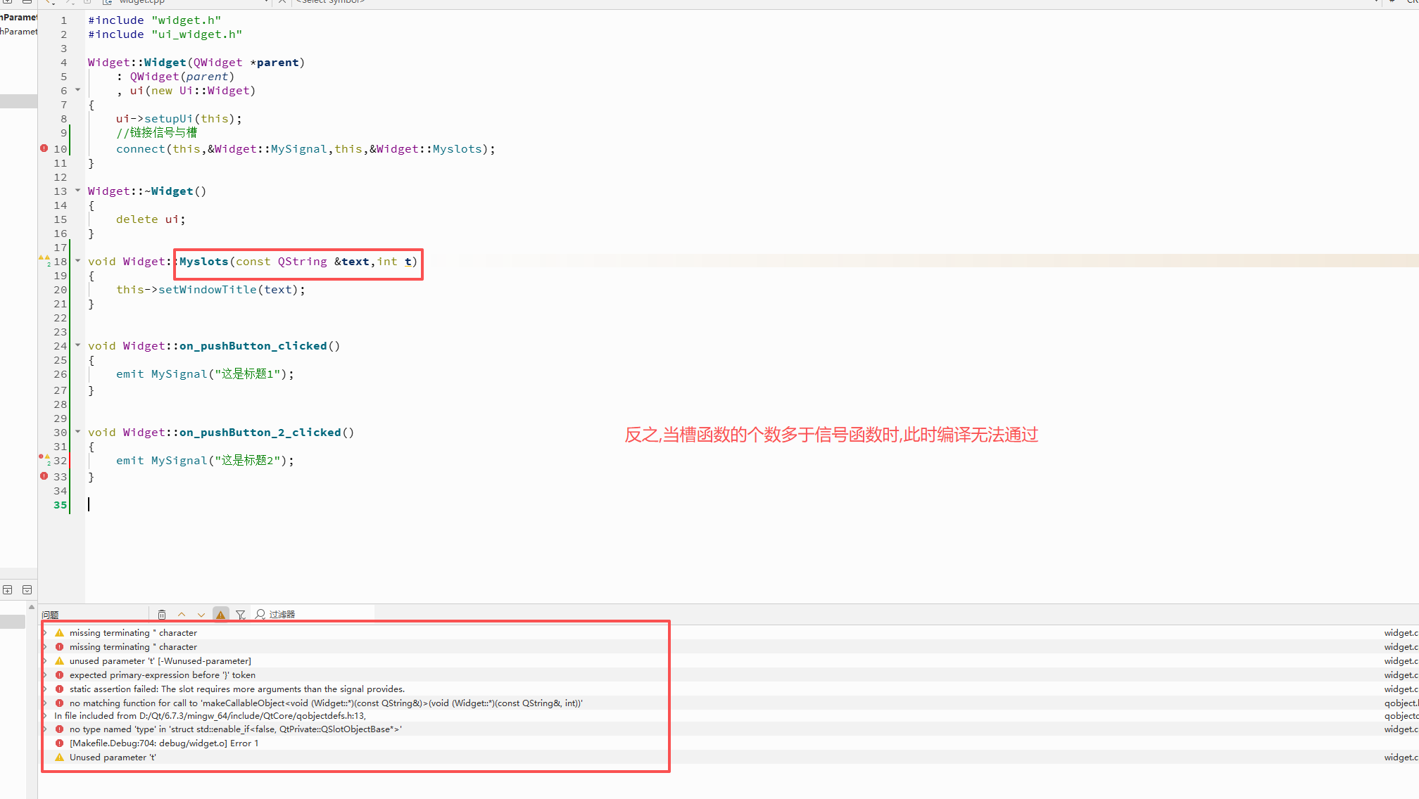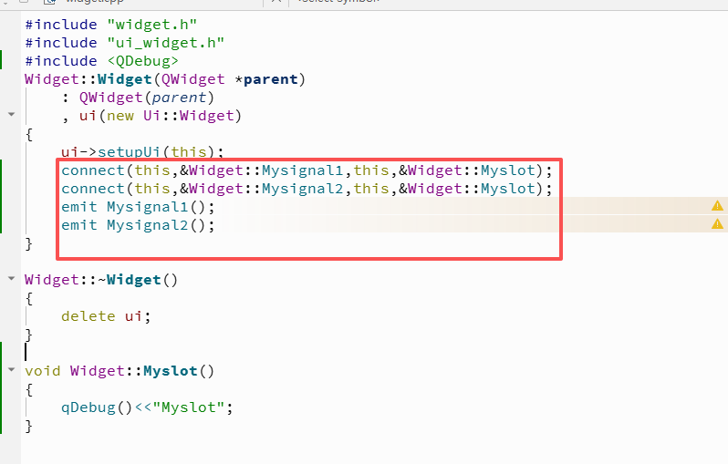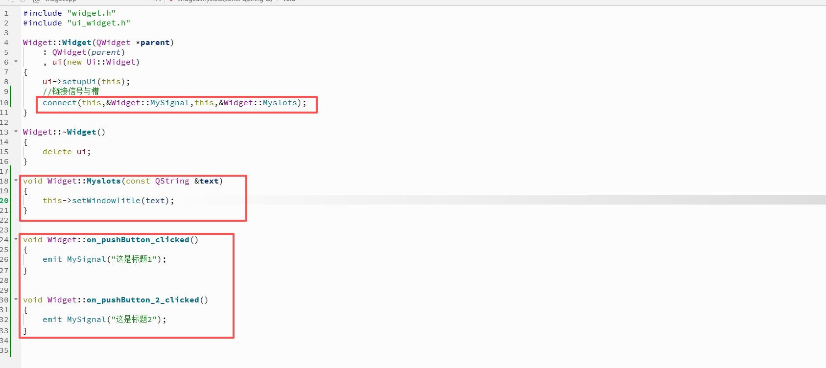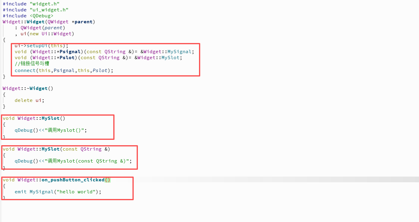 connect(this,&Widget::Mysignal,this,&Widget::Myslots2);