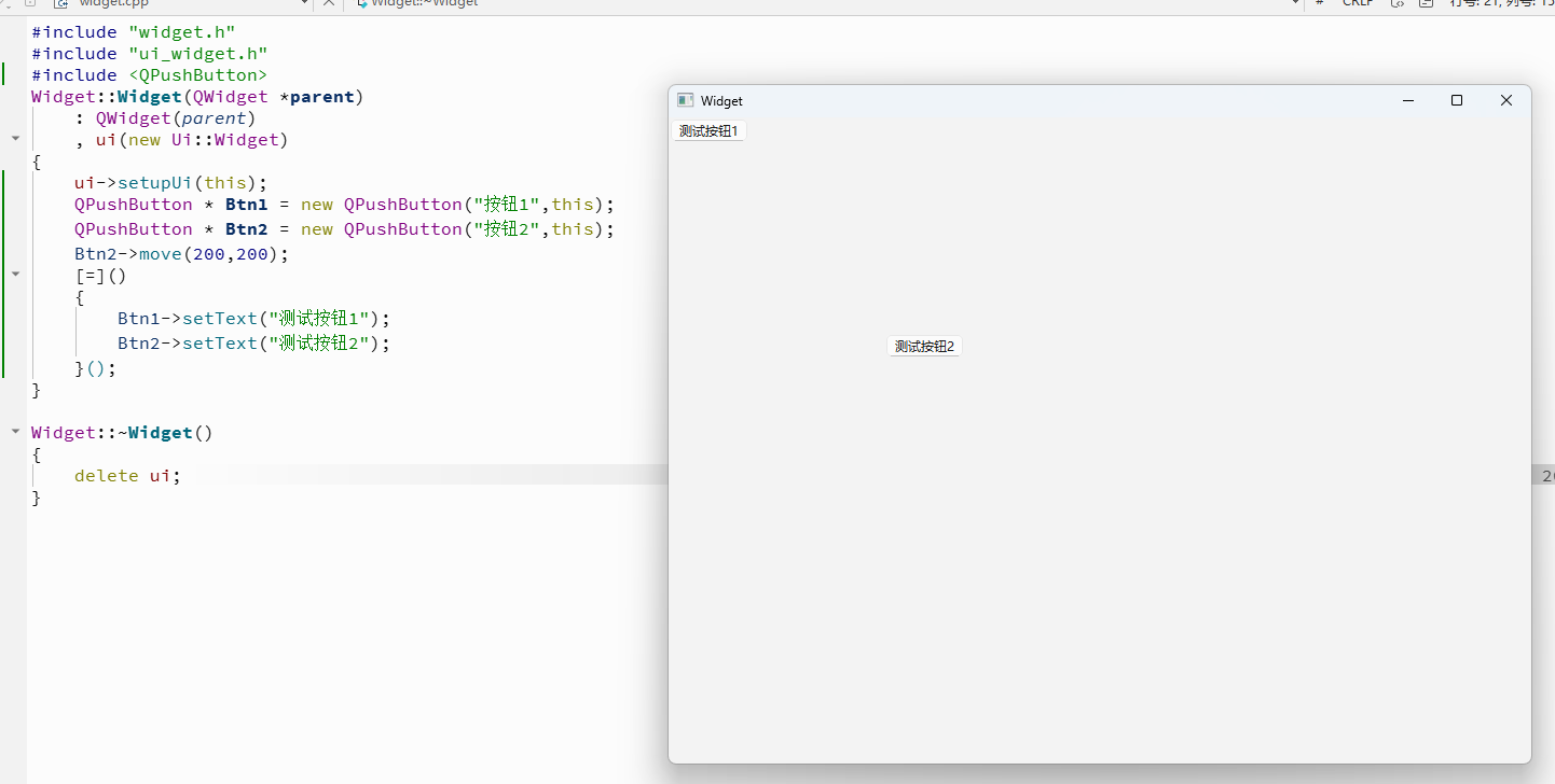 QPushButton * Btn2 = new QPushButton("按钮2",this);