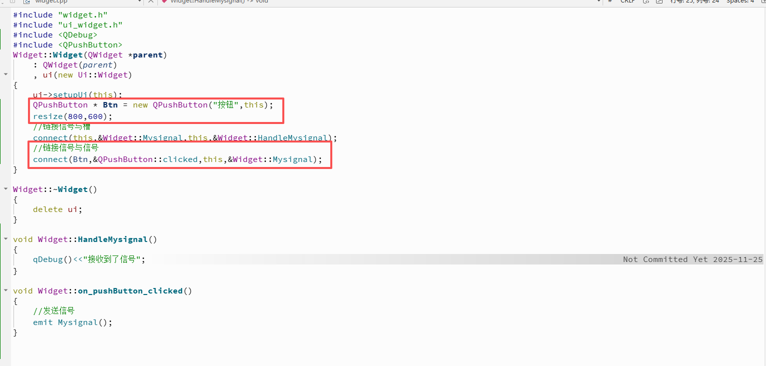 connect(Btn,&QPushButton::clicked,this,&Widget::Mysignal);